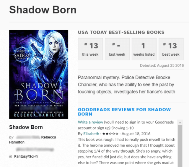 “Rebecca Hamilton is THE marketing expert for indie speculative fiction. She walked me through, step-by-step, how to hit the USAT list with my book Shifted in Jan 2019, and I can honestly say there's no way I and my coauthors would have made it without her sage instructions. That coupled with all I have learned from her about release strategies, FB ad creation and writing technique have set me on the right path to being a well-known name in the industry, and I love her 3000 ❤"